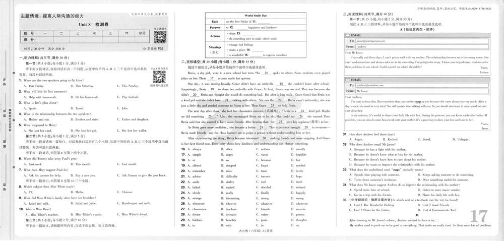 新教材人教版八年级上册英语期末测试卷十六