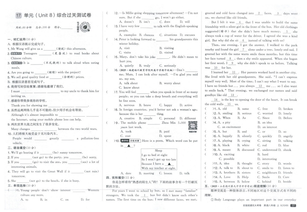 上一篇:新教材人教版八年级上册英语Unit8测试卷八