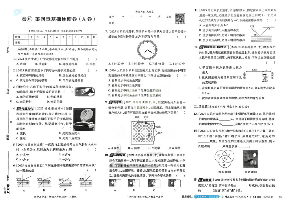 上一篇:新教材人教版八年级上册物理第四章测试卷二