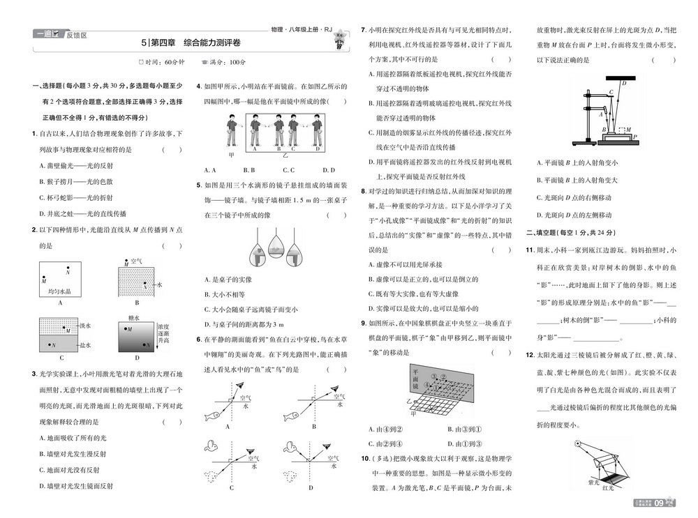 新教材人教版八年级上册物理第四章测试卷六