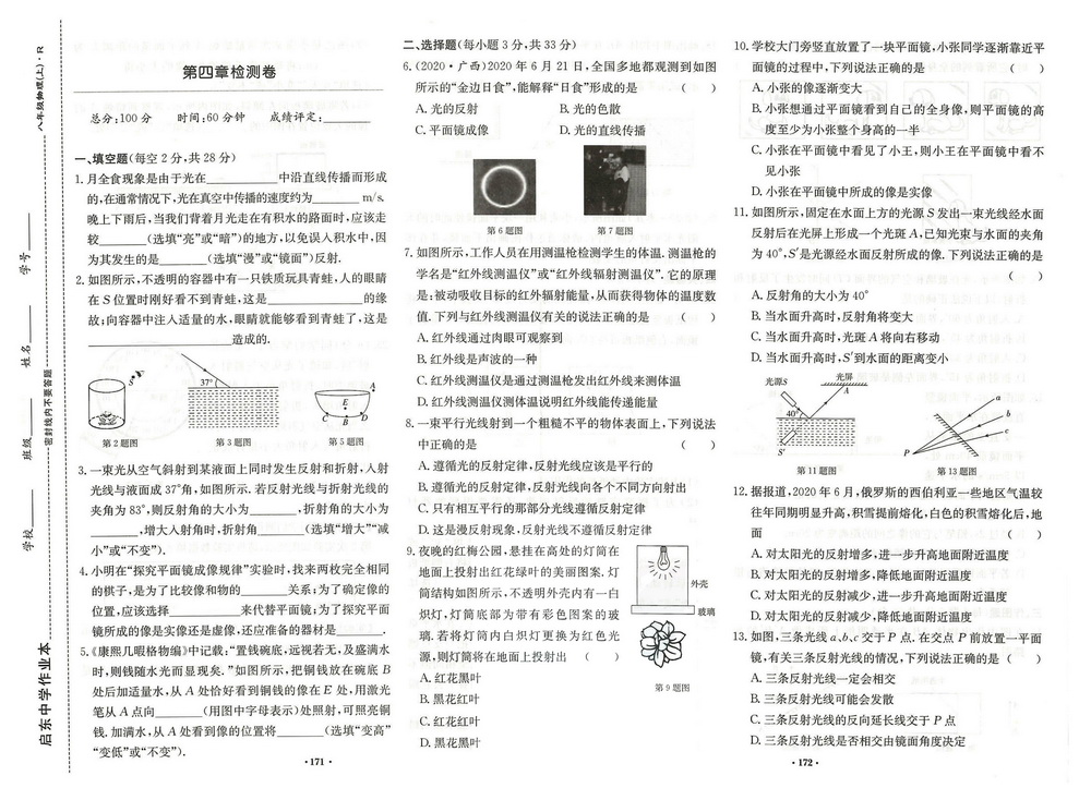 新教材人教版八年级上册物理第四章测试卷十