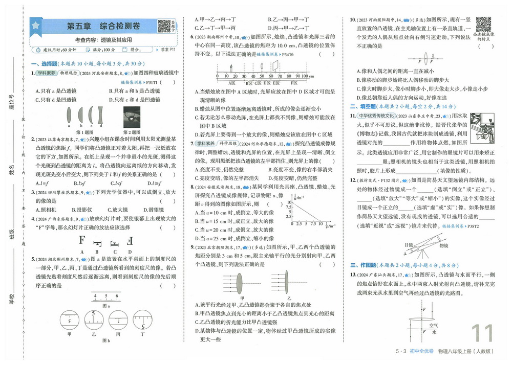 上一篇:新教材人教版八年级上册物理第五章测试卷六