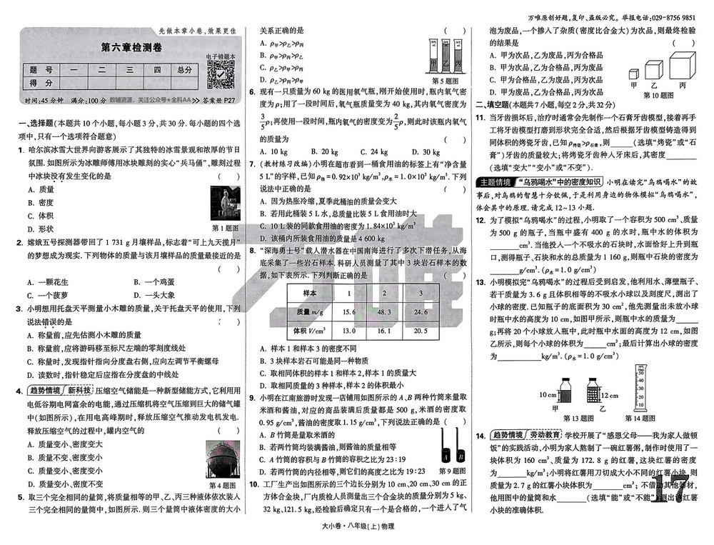 新教材人教版八年级上册物理第六章测试卷五