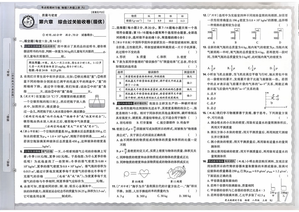 上一篇:新教材人教版八年级上册物理第六章测试卷六