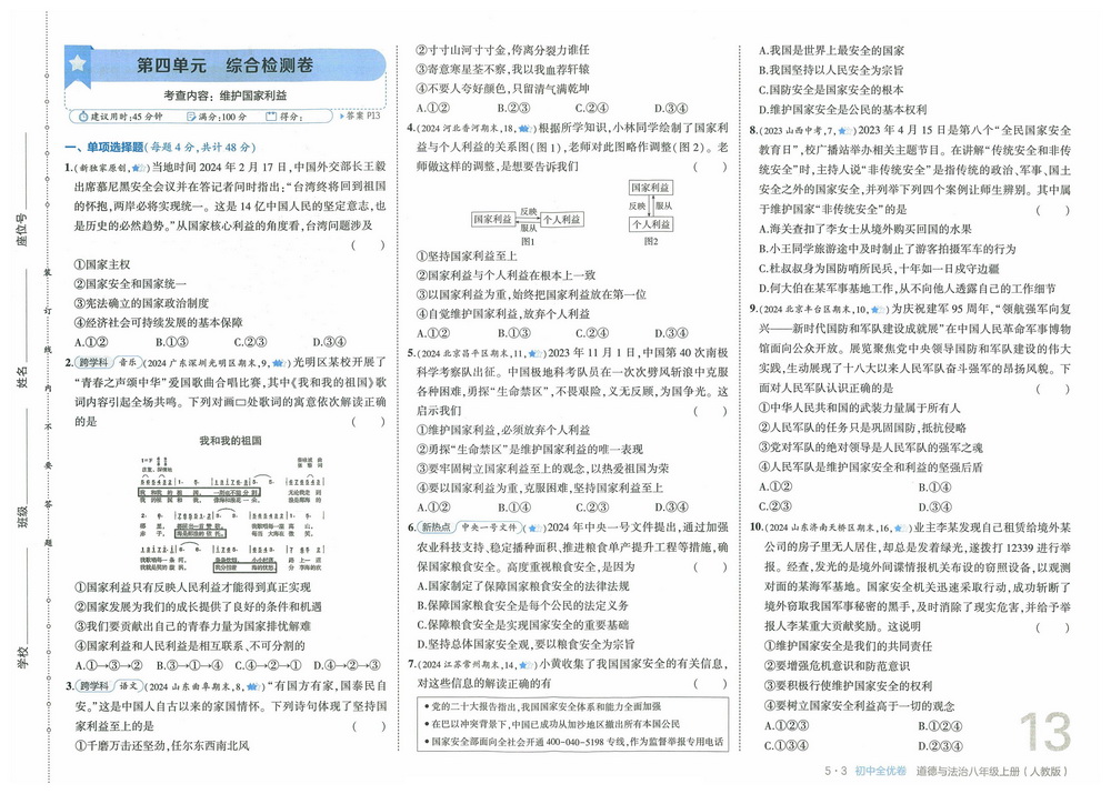 新教材人教版八年级上册道德与法治第四单元测试卷七