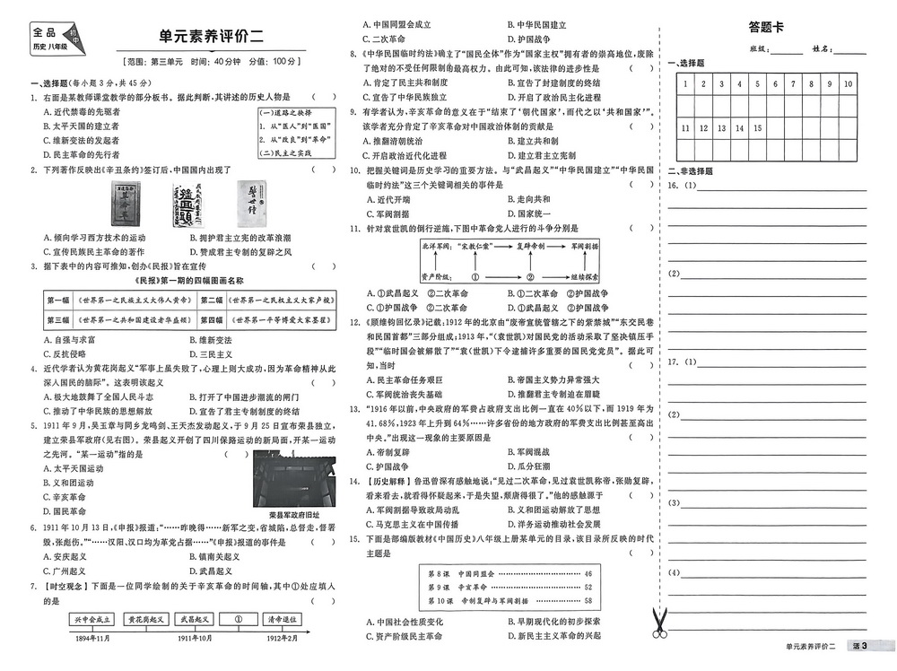 新教材人教版八年级上册历史第三单元测试卷六