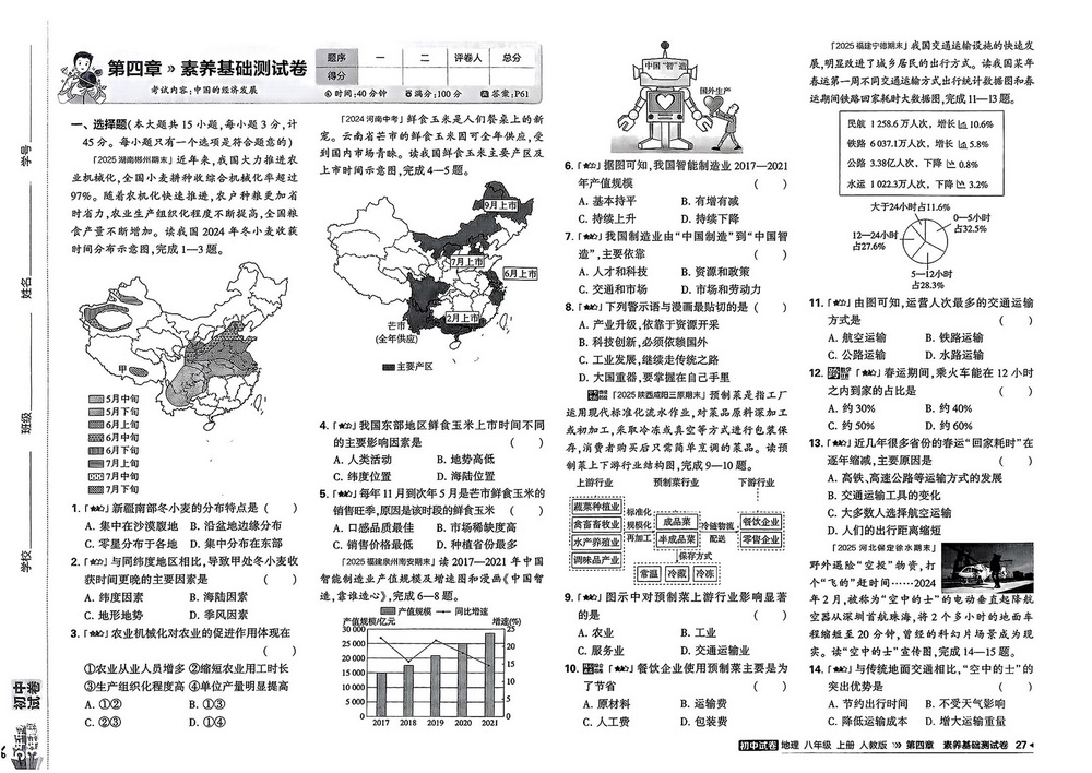 新教材人教版八年级上册地理第四章测试卷一