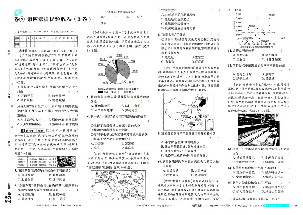 新教材人教版八年级上册地理第四章测试卷四
