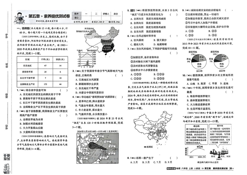 新教材人教版八年级上册地理第五章测试卷二