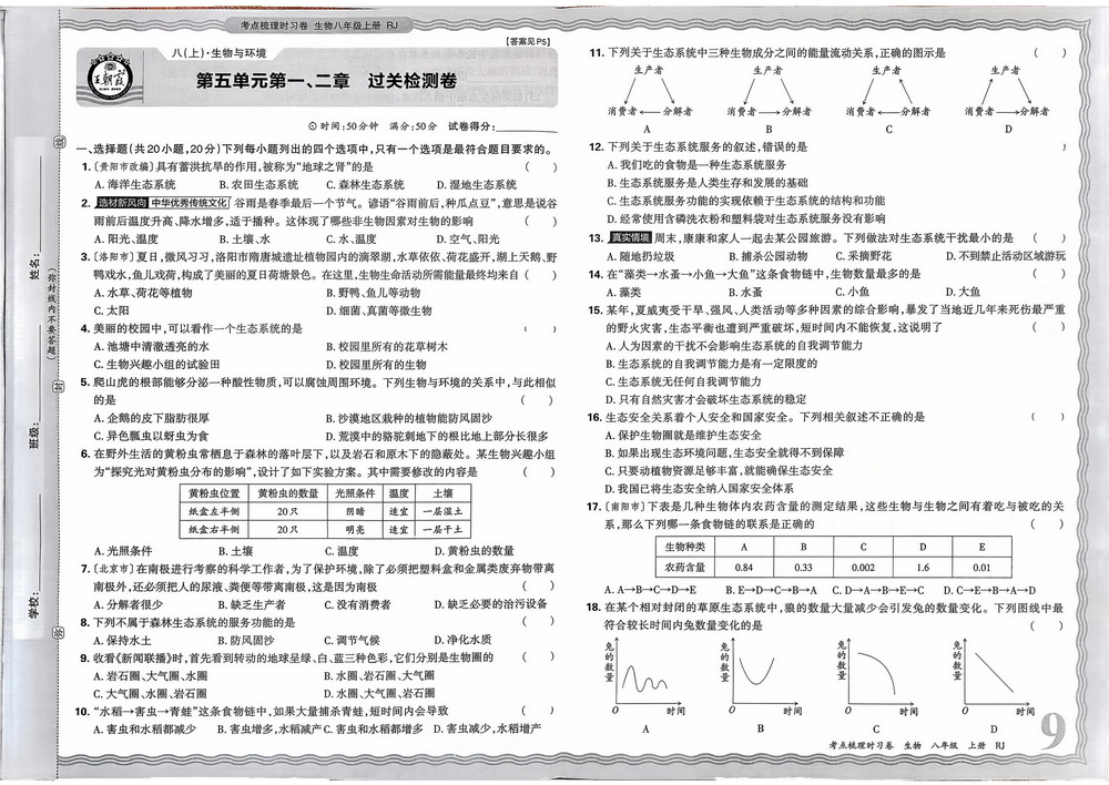 上一篇:新教材人教版八年级上册生物第五单元测试卷六