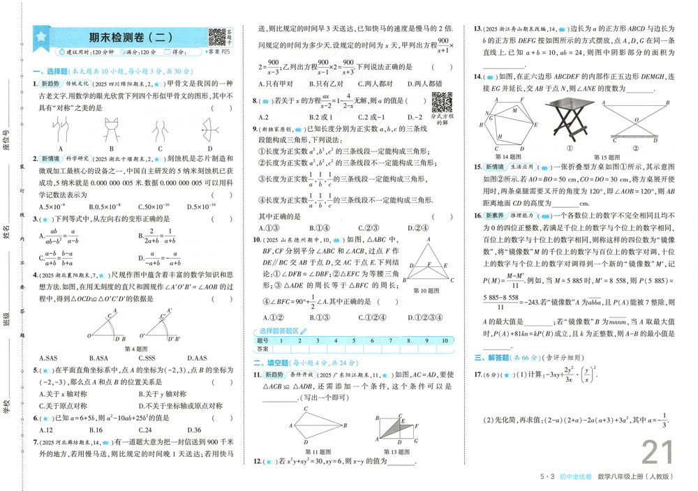 新教材人教版八年级上册数学期末测试卷二十一