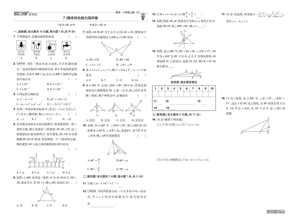 上一篇:新教材人教版八年级上册数学期末测试卷十四