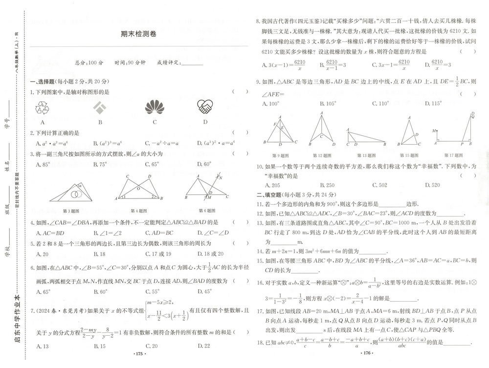 新教材人教版八年级上册数学期末测试卷二十四