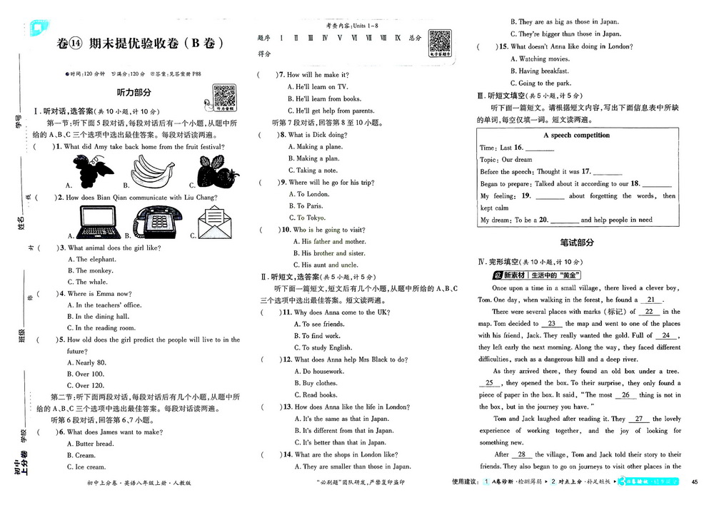 上一篇:新教材人教版八年级上册英语期末测试卷三