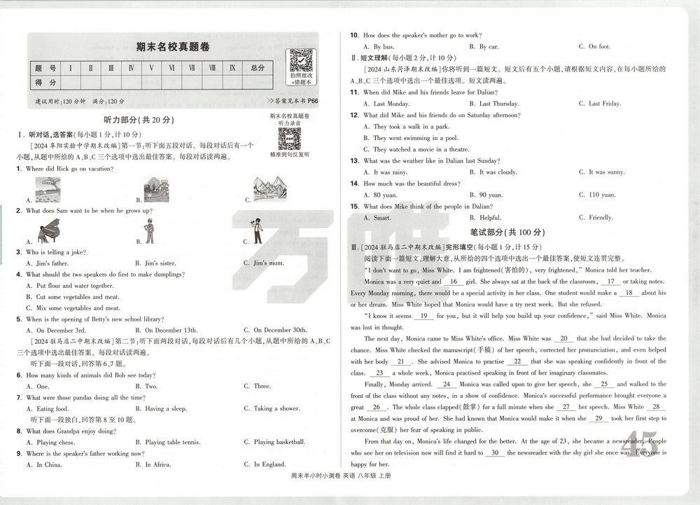 上一篇:新教材人教版八年级上册英语期末测试卷七