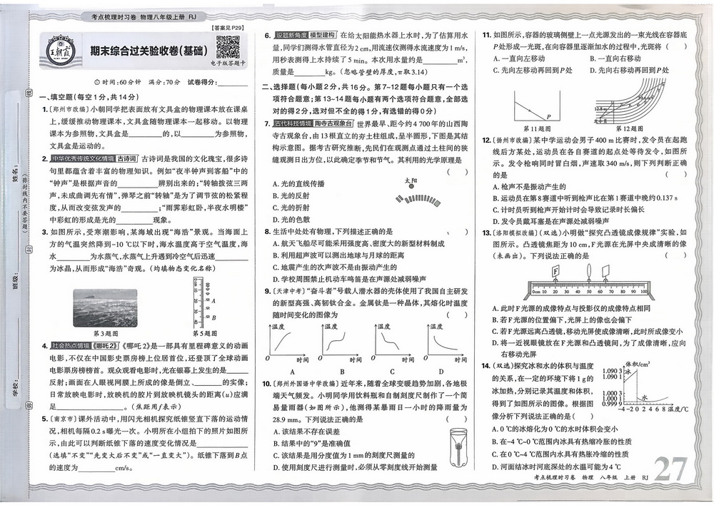 新教材人教版八年级上册物理期末测试卷十