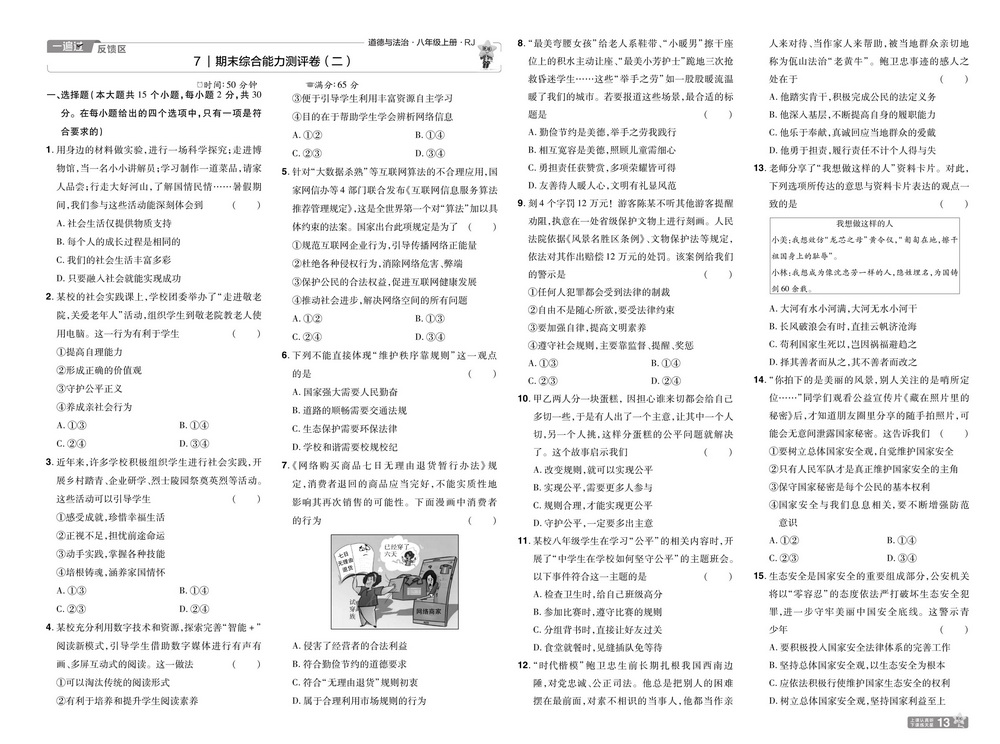 上一篇:新教材人教版八年级上册道德与法治期末测试卷八