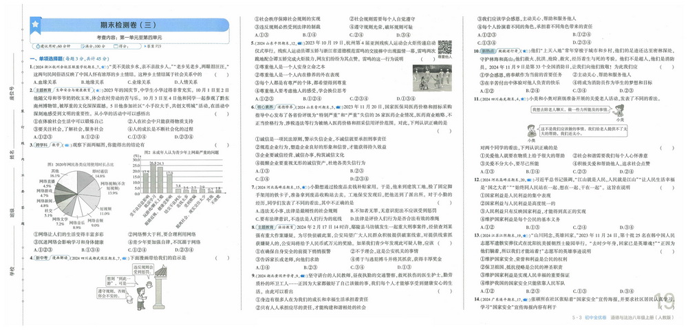 新教材人教版八年级上册道德与法治期末测试卷十三