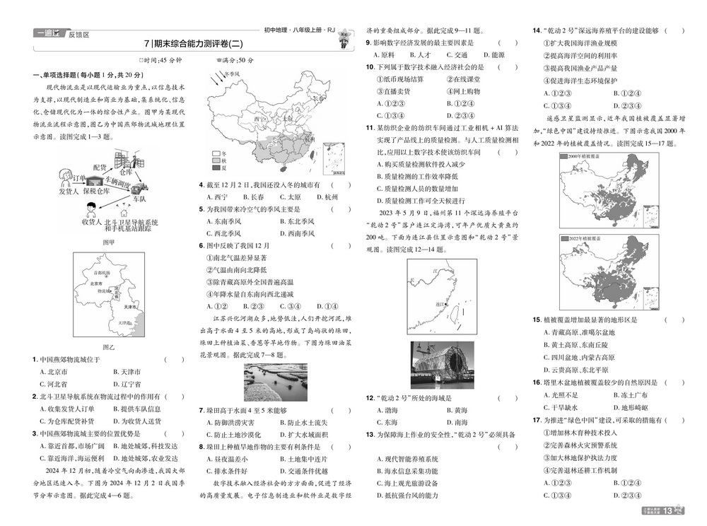 上一篇:新教材人教版八年级上册地理期末测试卷四