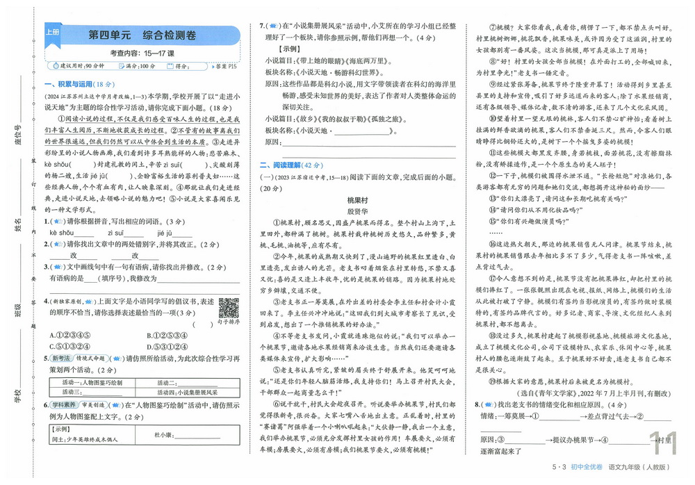 人教版九年级上册语文期末测试卷五