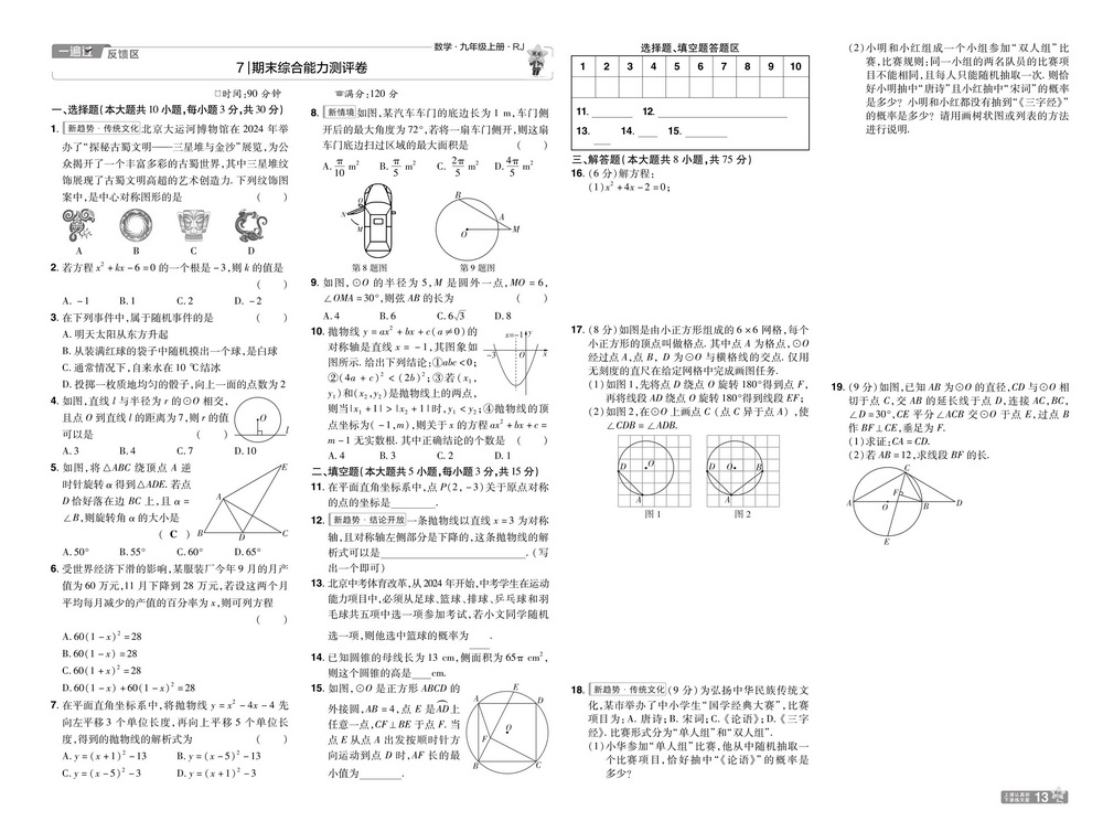 人教版九年级上册数学期末测试卷十