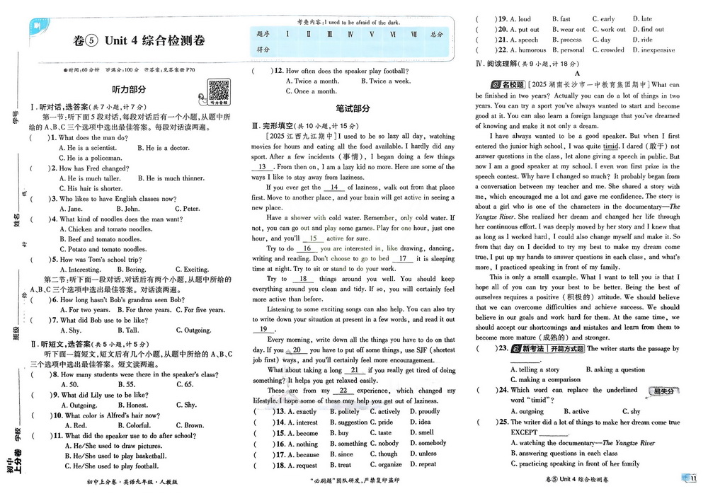 上一篇:人教版九年级上册英语Unit4测试卷一