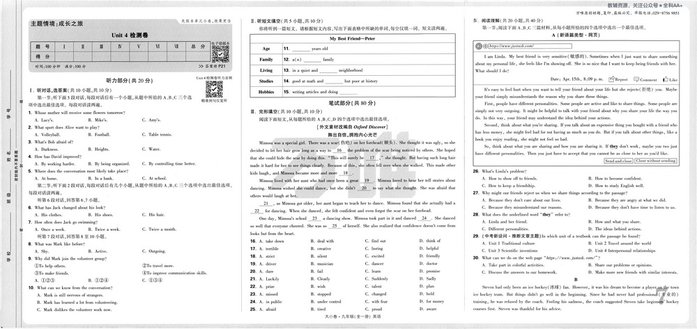 上一篇:人教版九年级上册英语Unit4测试卷二