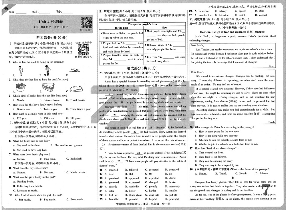 人教版九年级上册英语Unit7测试卷七