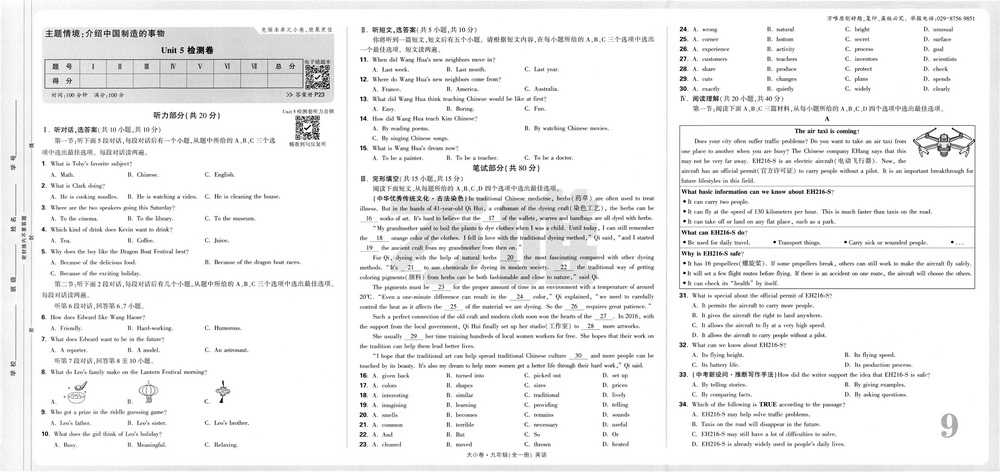 人教版九年级上册英语Unit5测试卷三