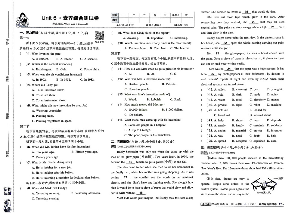 人教版九年级上册英语Unit6测试卷一