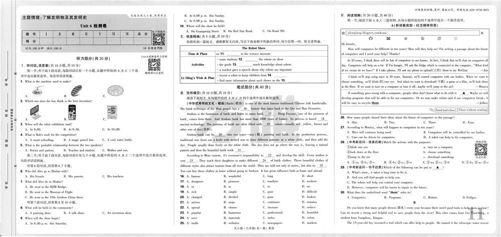 上一篇:人教版九年级上册英语Unit6测试卷二