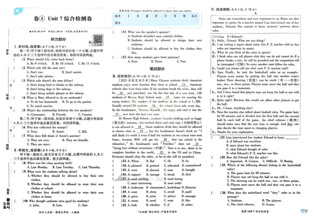 上一篇:人教版九年级上册英语Unit7测试卷一