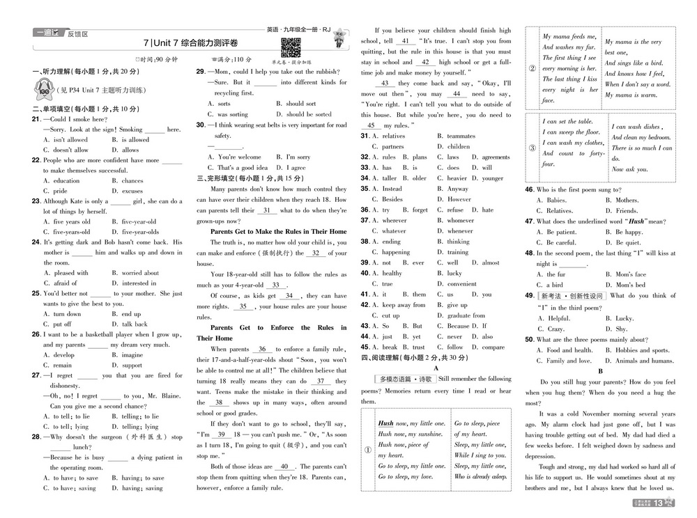 人教版九年级上册英语Unit7测试卷七