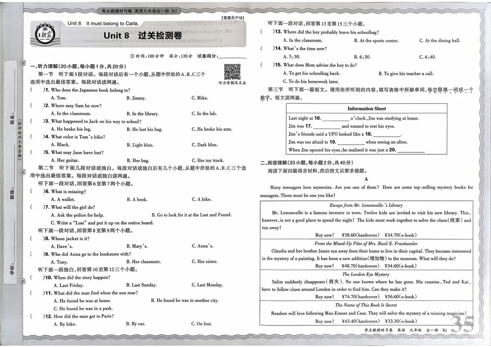 人教版九年级上册英语Unit8测试卷八