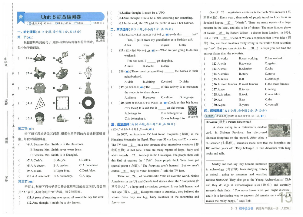 上一篇:人教版九年级上册英语Unit8测试卷七