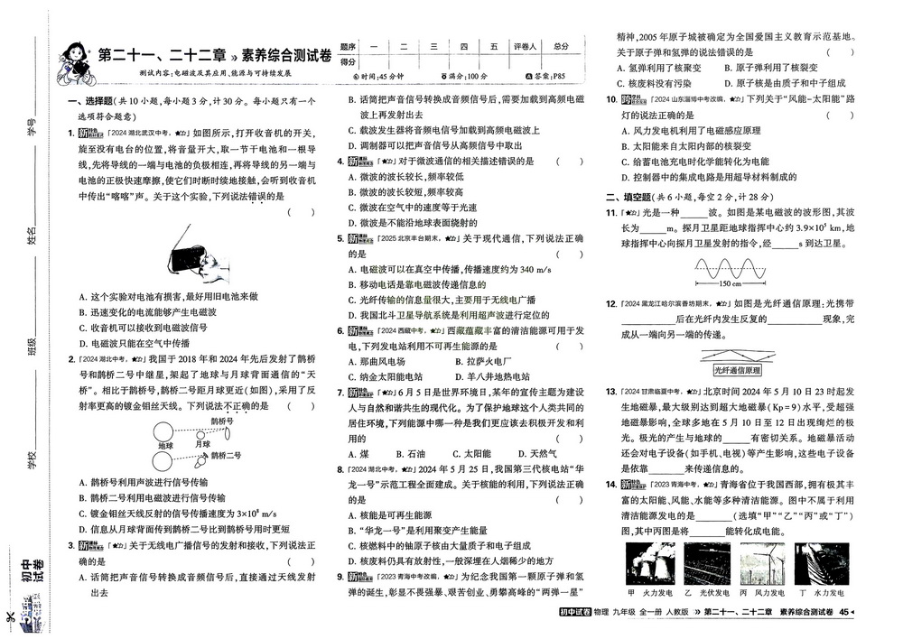 人教版九年级下册物理第二十一章、二十二章测试卷二