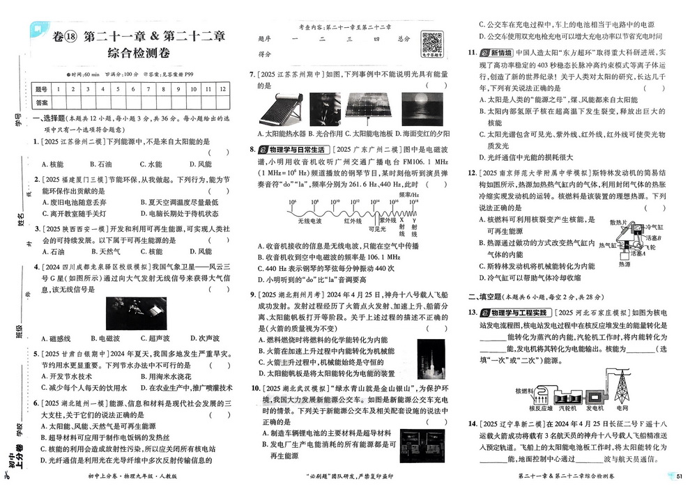人教版九年级下册物理第二十一章、二十二章测试卷二