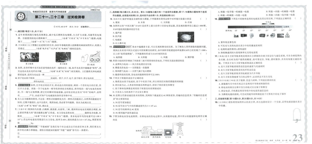 人教版九年级下册物理第二十一章、二十二章测试卷一