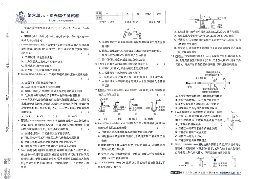 人教版九年级上册化学第六单元测试卷二