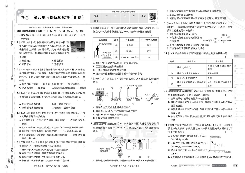 人教版九年级下册化学第八单元测试卷二