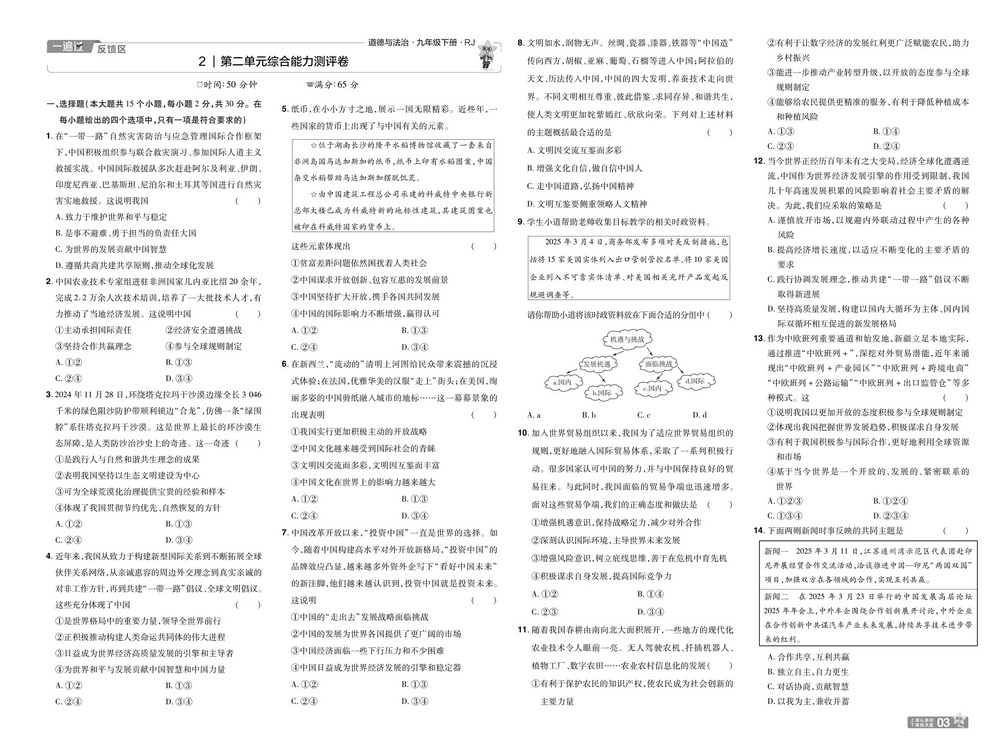 上一篇:人教版九年级下册道德与法治第二单元测试卷二
