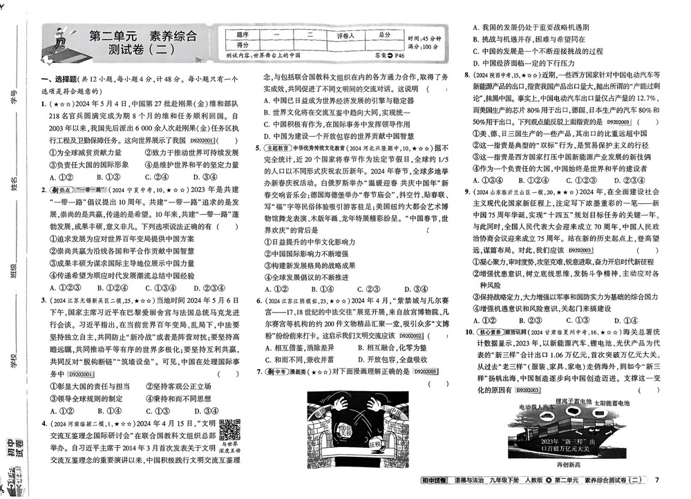 上一篇:人教版九年级下册道德与法治第二单元测试卷五
