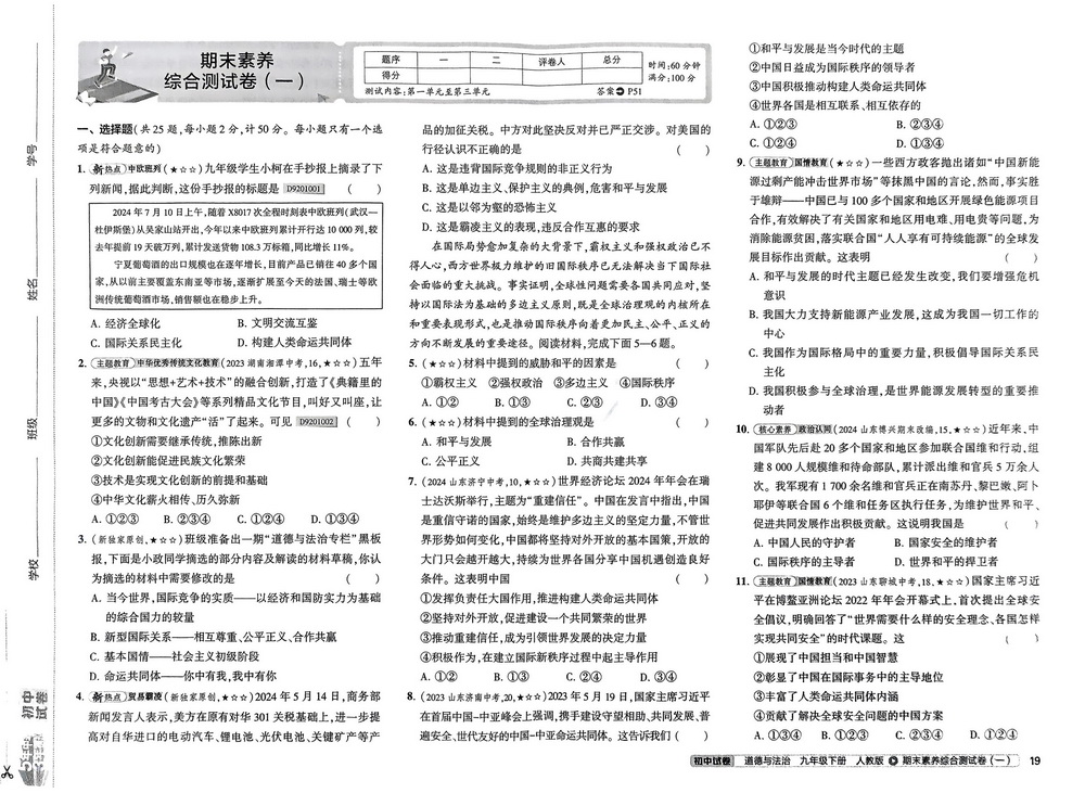 上一篇:人教版九年级下册道德与法治期末测试卷四