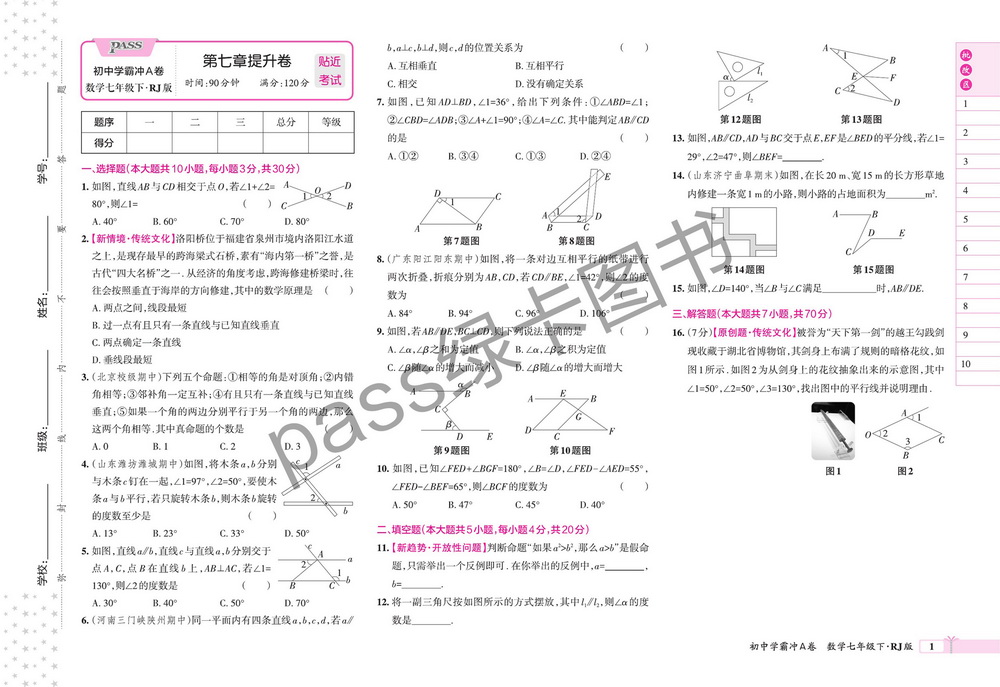 新教材人教版七年级下册数学第七章测试卷八