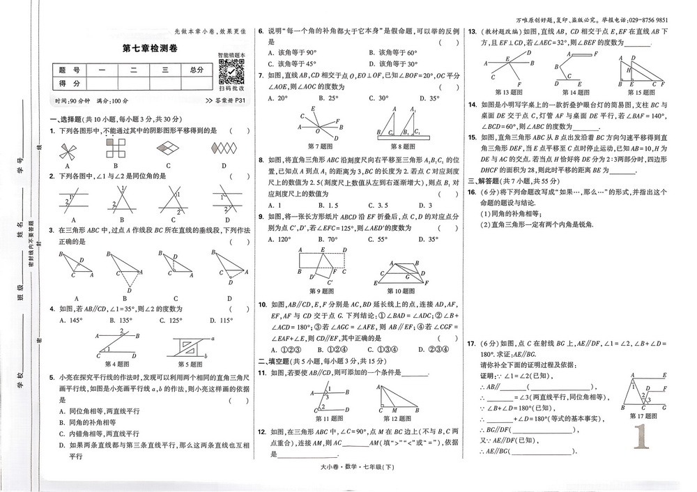 新教材人教版七年级下册数学第七章测试卷九