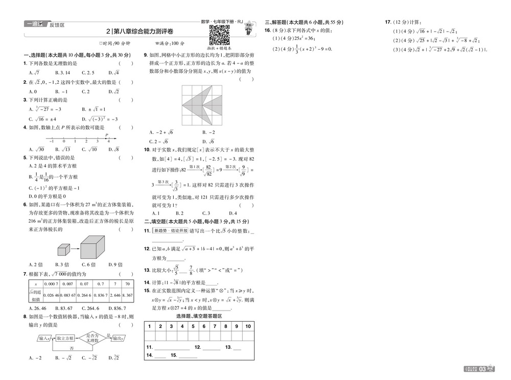 新教材人教版七年级下册数学第八章测试卷六