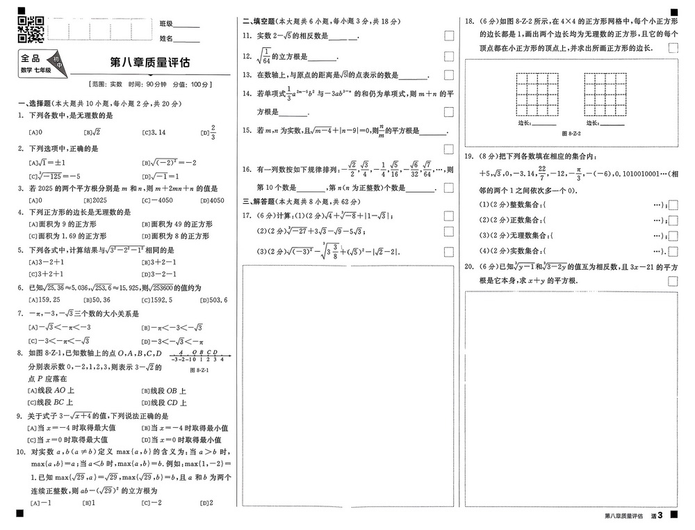 新教材人教版七年级下册数学第八章测试卷九