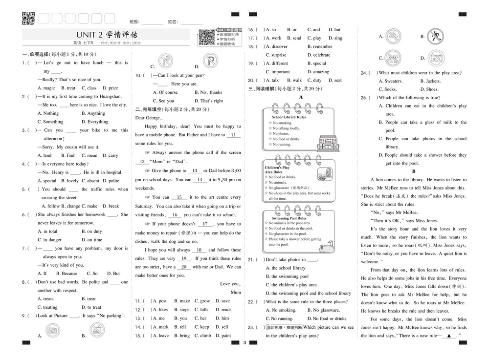 上一篇:新教材人教版七年级下册英语Unit1综合测试卷八