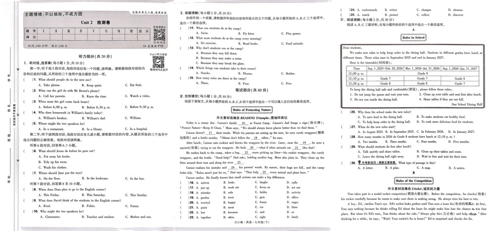上一篇:新教材人教版七年级下册英语Unit2测试卷六