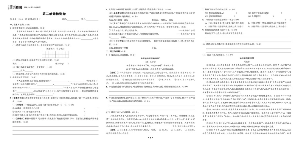 上一篇:新教材人教版七年级下册语文第二单元测试卷九